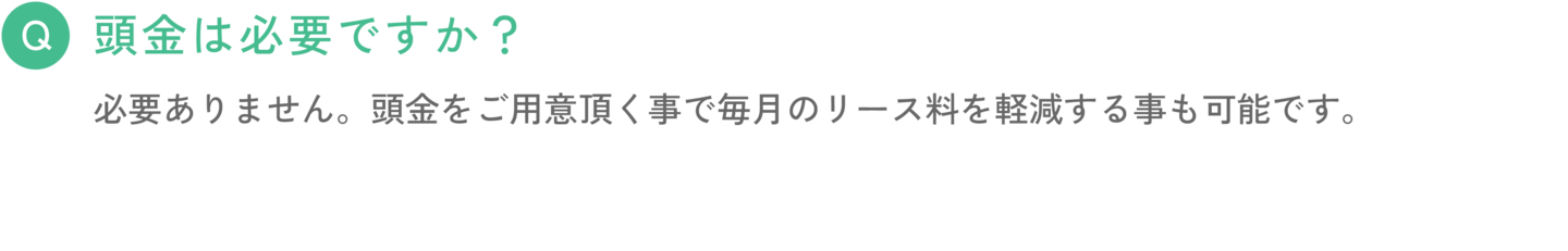 必要ありません。頭金をご用意頂く事で毎月のリース料を軽減する事も可能です。